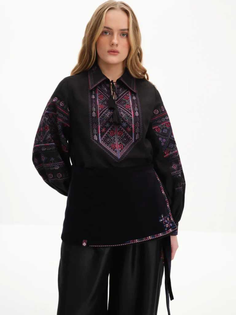 Гуцули називають чорницю яфинами або афинами, і саме її насичений, глибокий колір став натхненням для відтінку вишивки на басці.