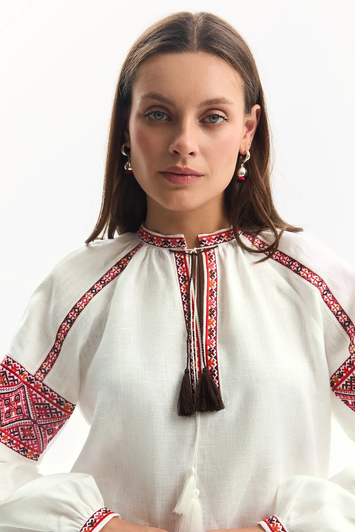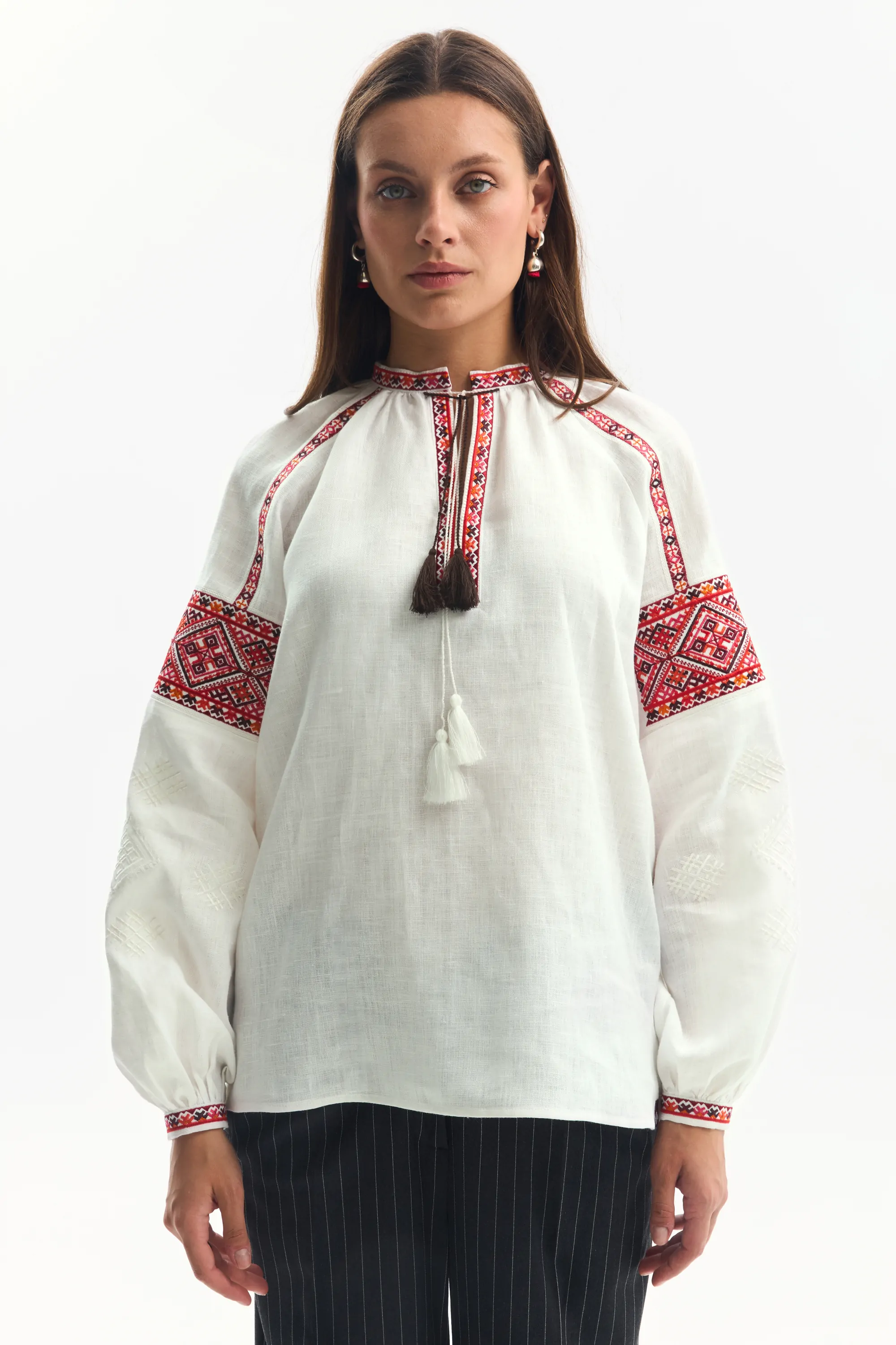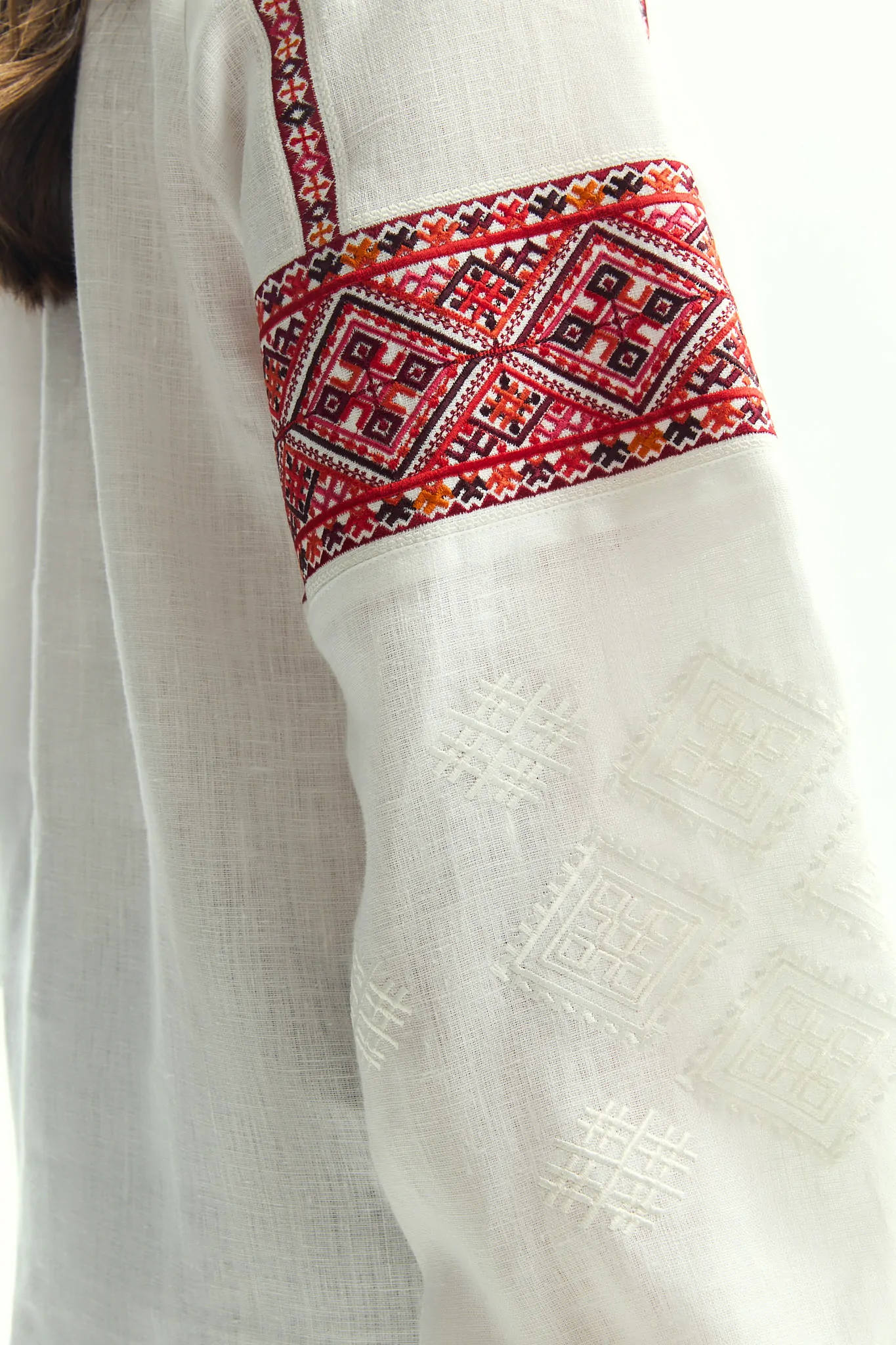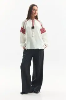 Жіноча вишиванка з льону. Орнамент походить з Івано-Франківської області.