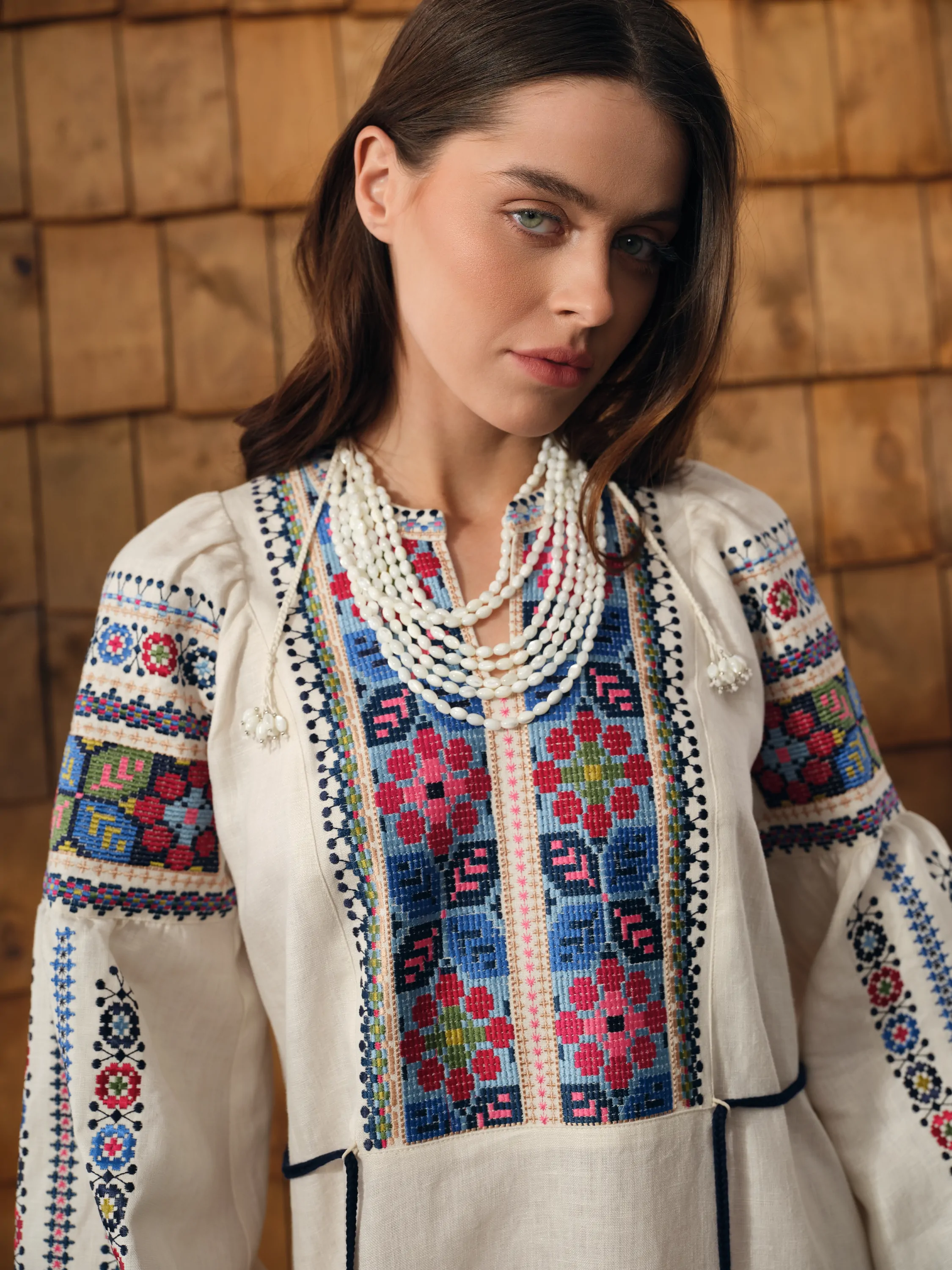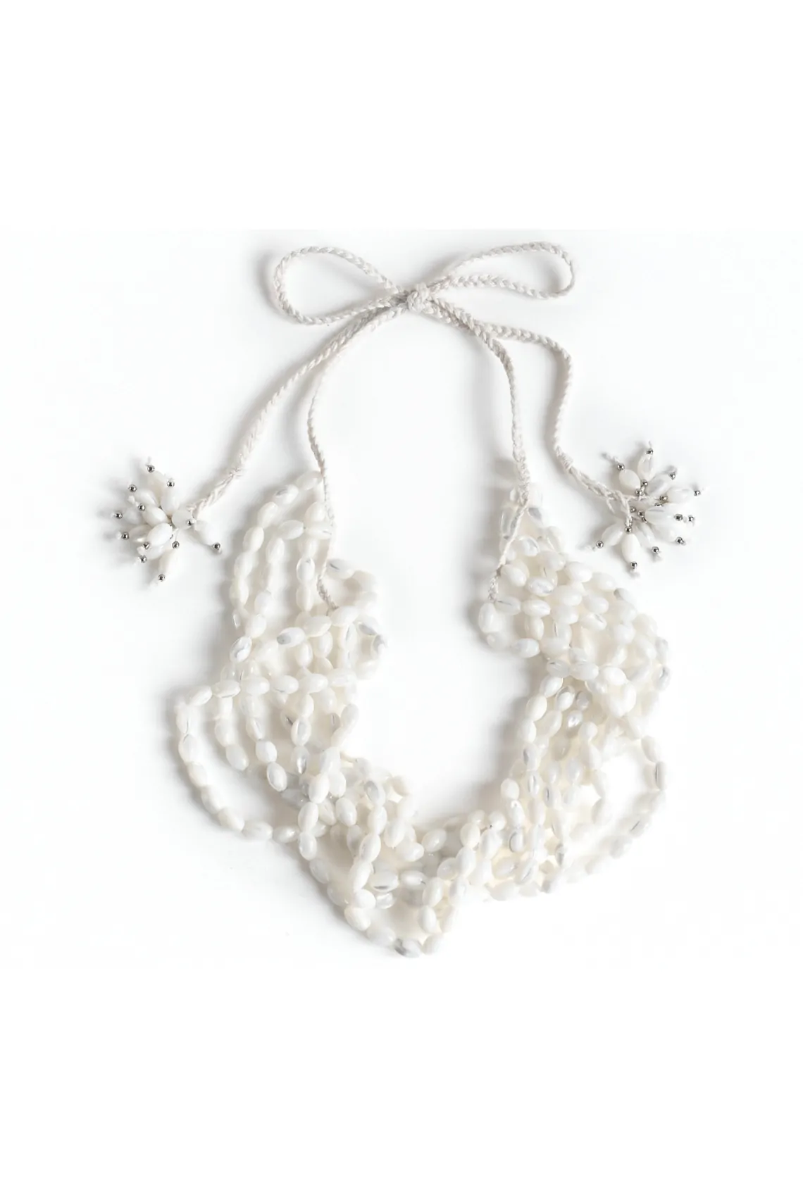 Семирядне намисто, містить перламутрові камінці у формі рису розміром 6*9 мм. Основа – надійна бавовняна нитка.