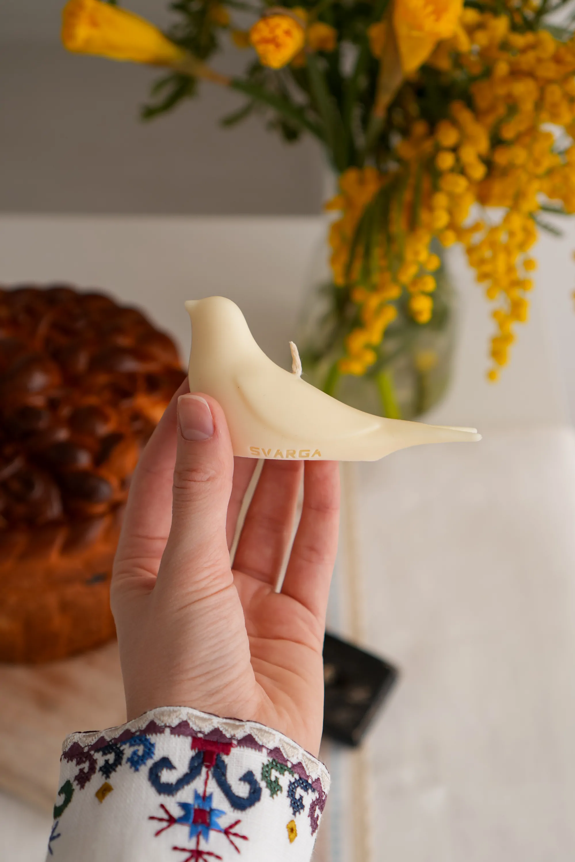 Свічка «Ластівка» є частиною великодньої колекції товарів для дому «Гуцулія». Її назва є символічною відсилкою до Параски Плитки-Горицвіт, адже саме “Ластівка” – позивний мисткині.