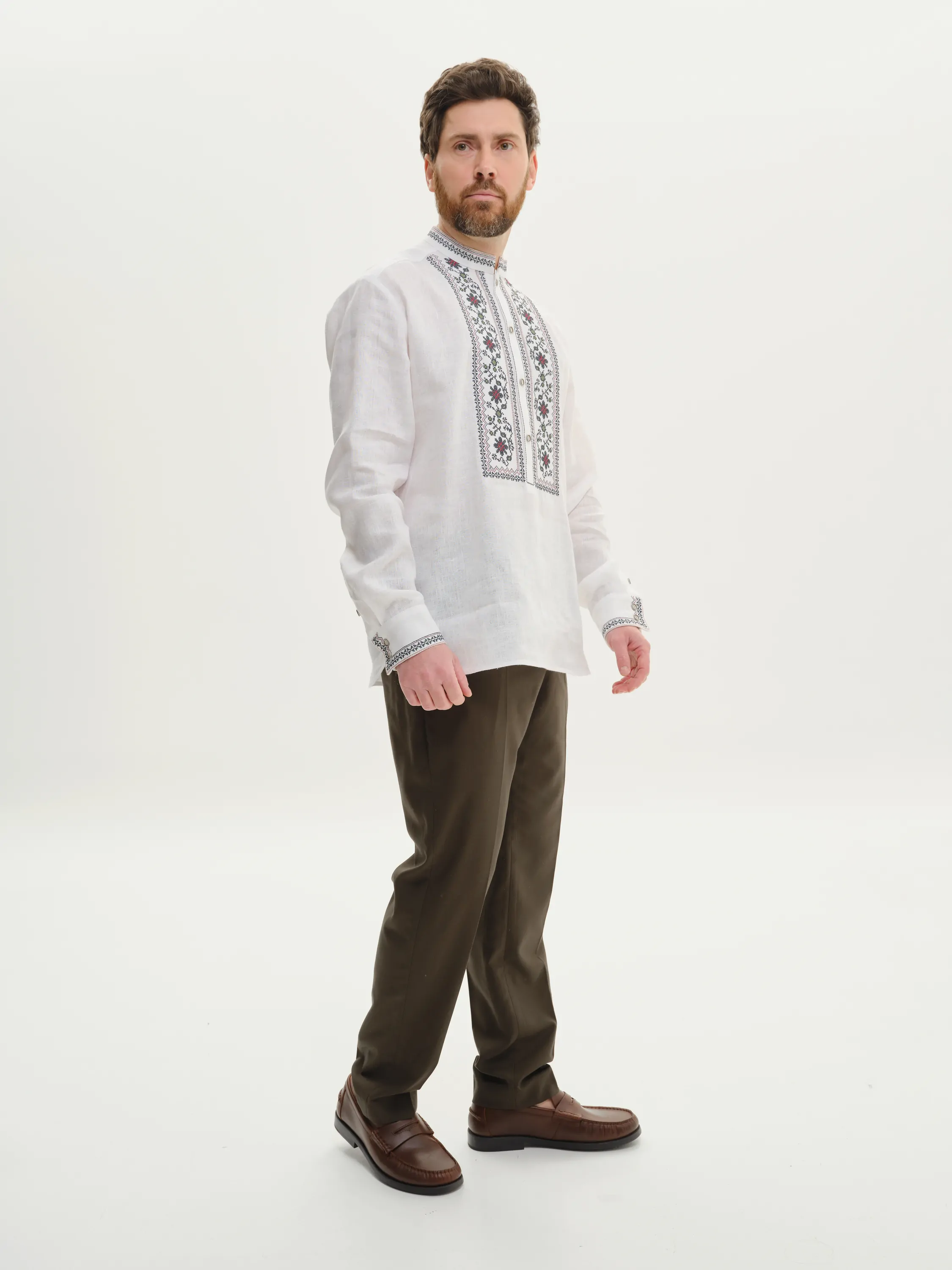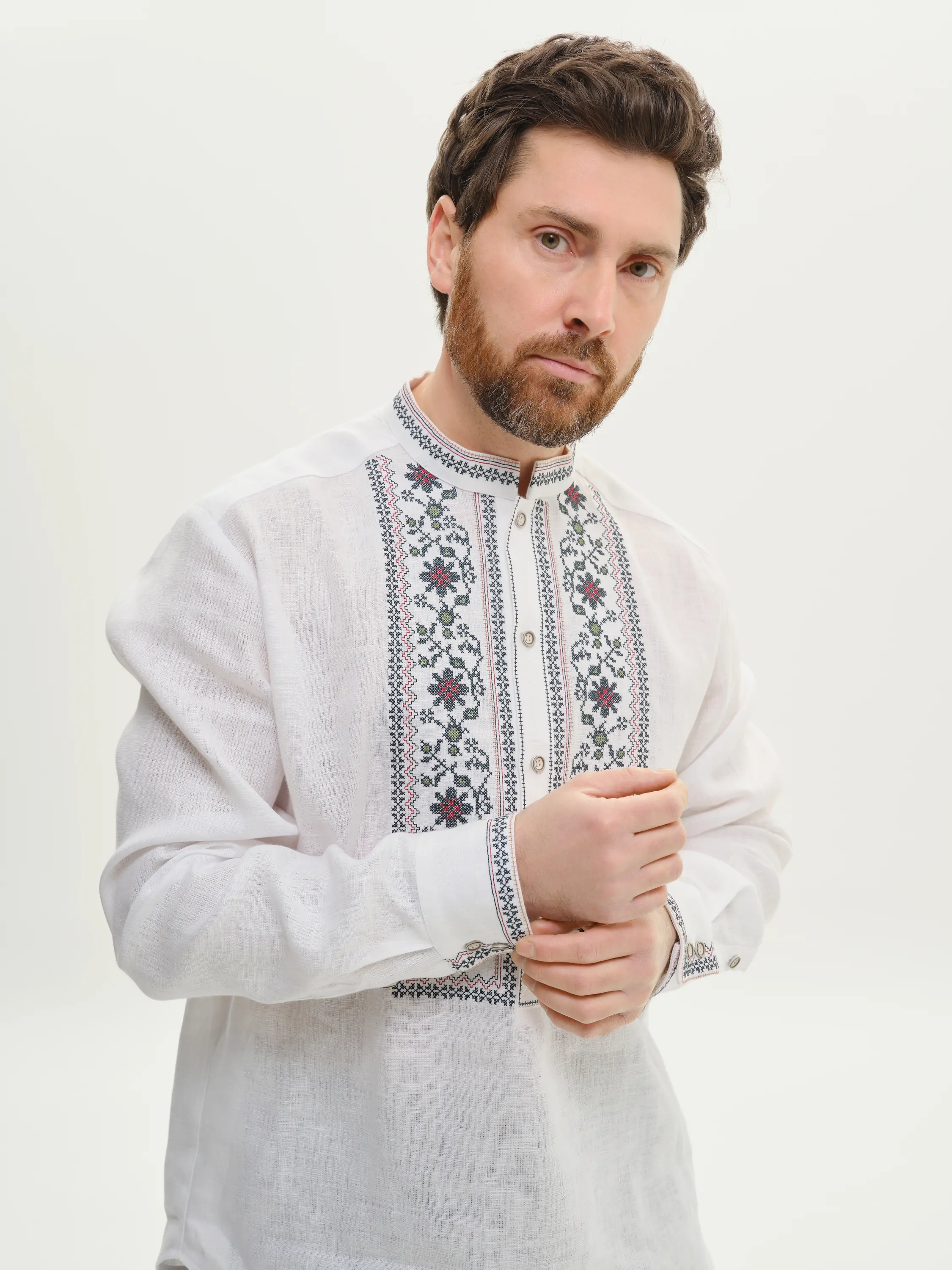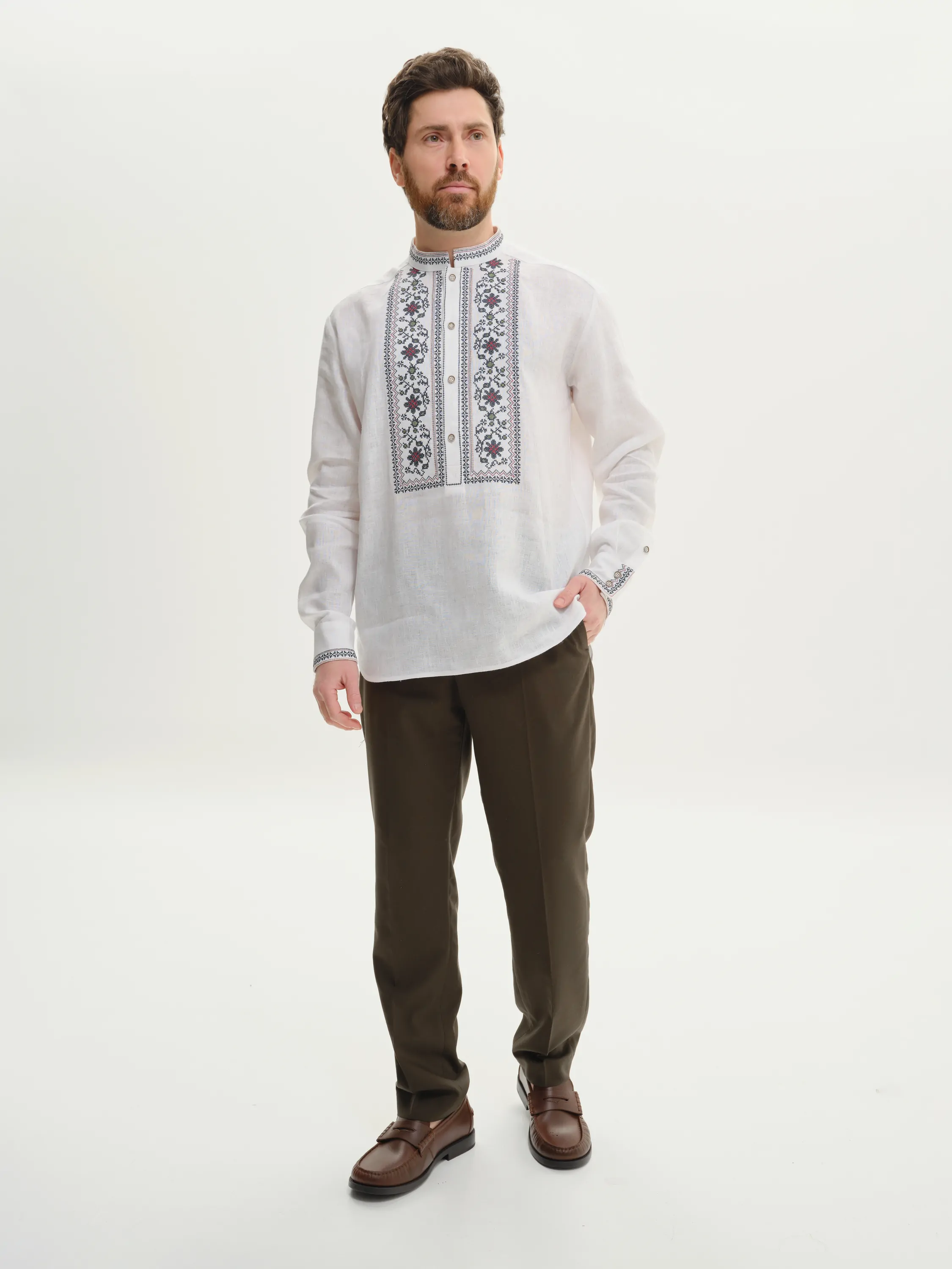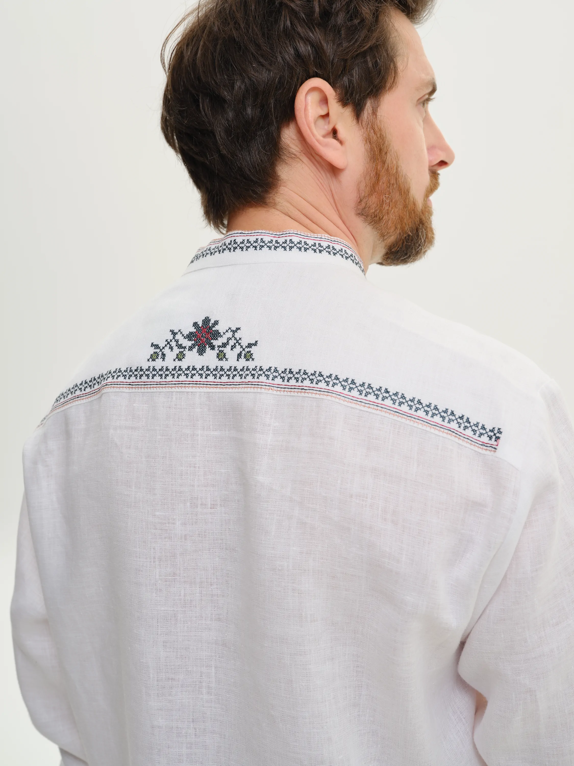 Орнамент походить з вишиванки початку XX століття з села Троєщина, Броварського району, Київської області. Експонат, з якого відтворено взір, зберігається у фондах Національного музею архітектури та побуту України.