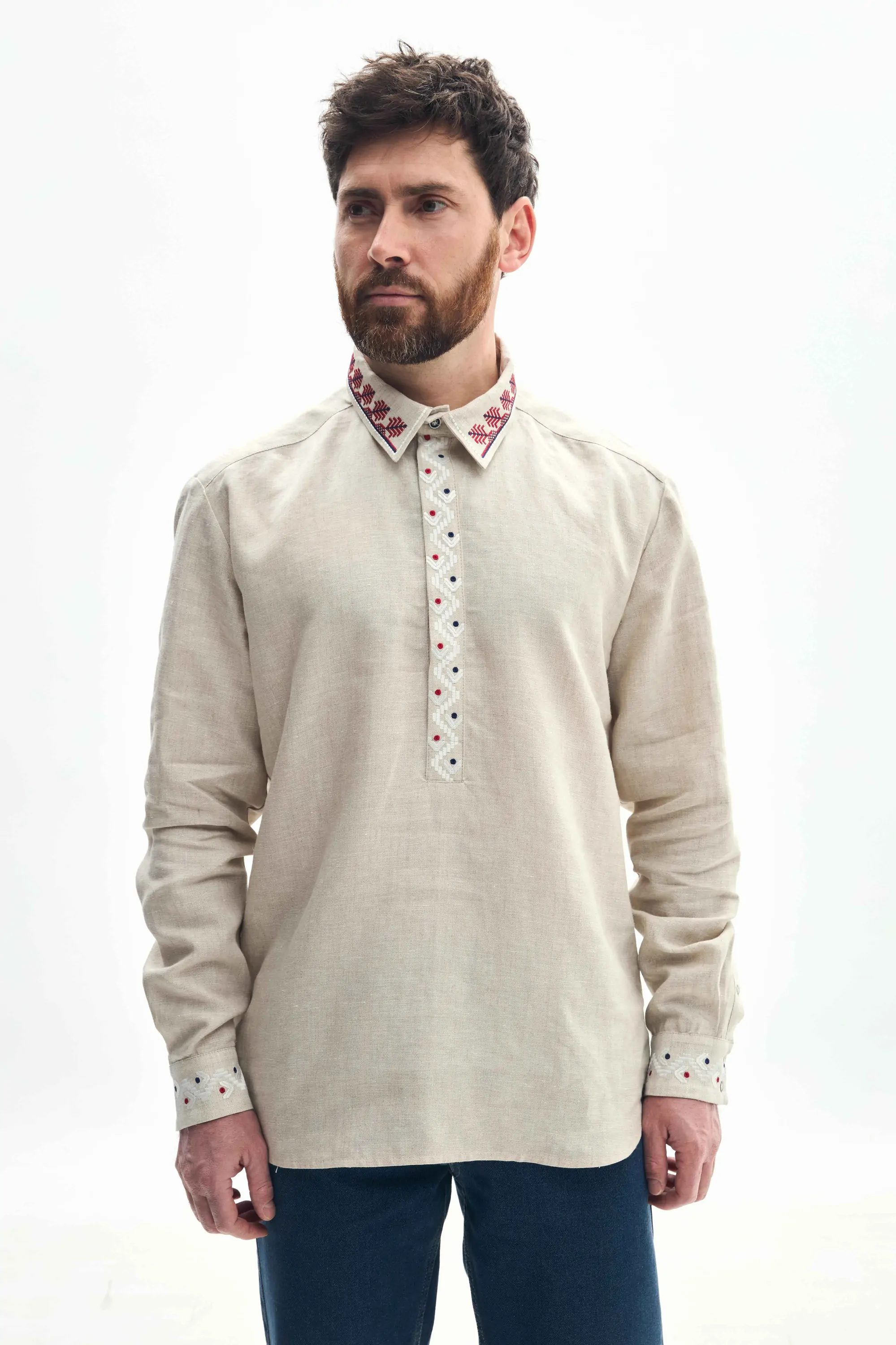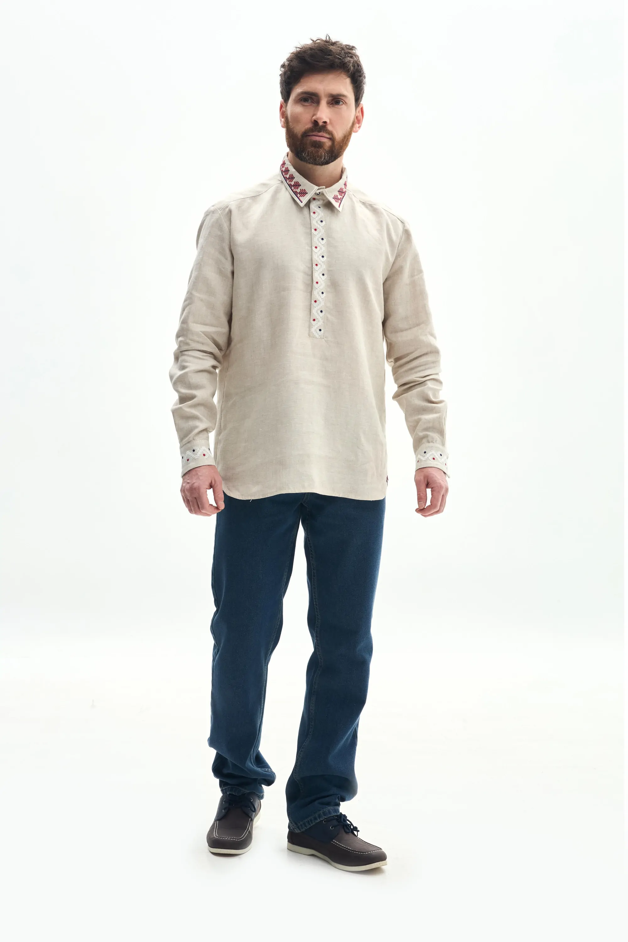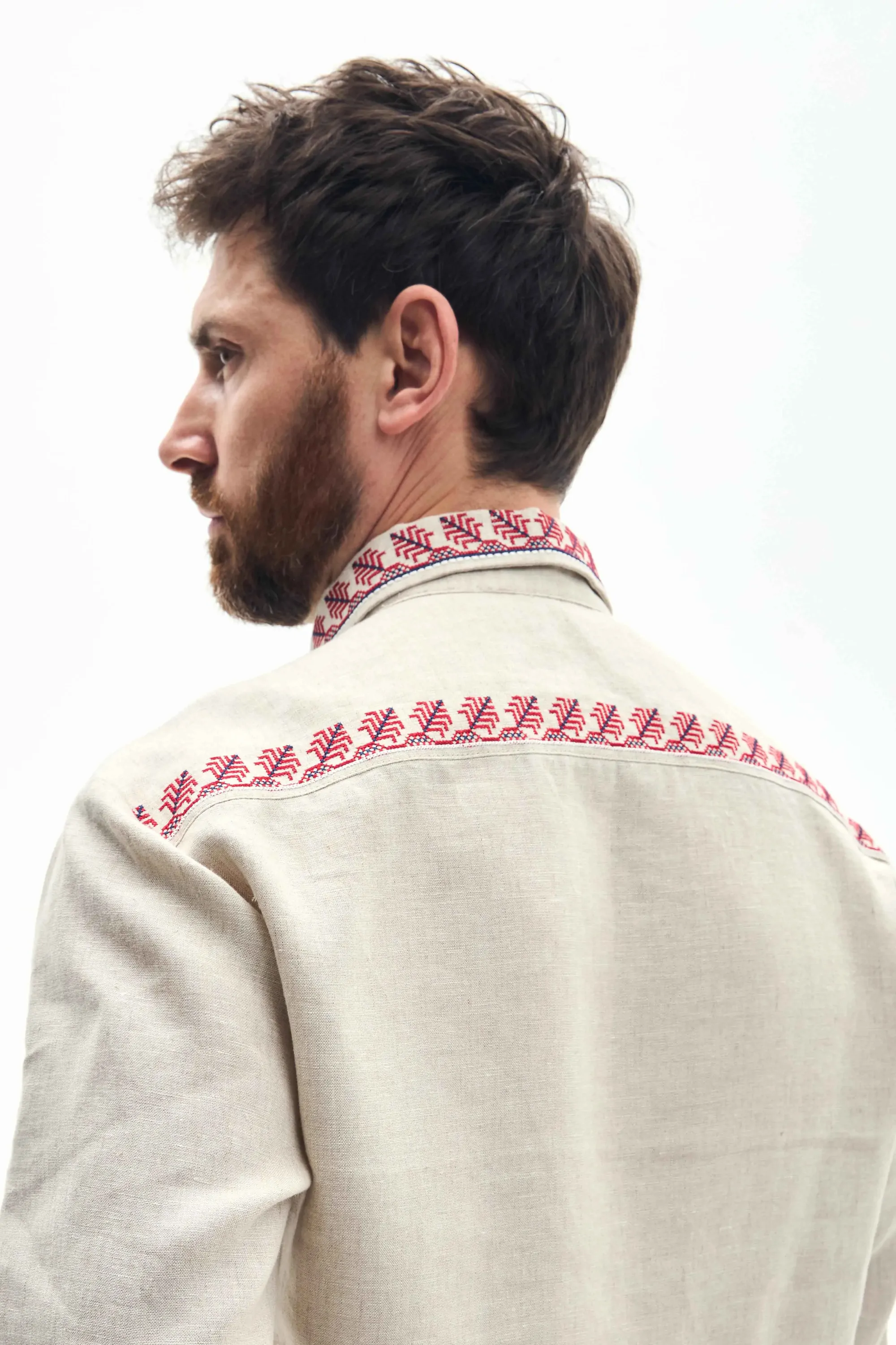 Чоловіча вишиванка з капсули “Луганщина”, яку створено в рамках співпраці з ГО “Всесвітній день вишиванки”.