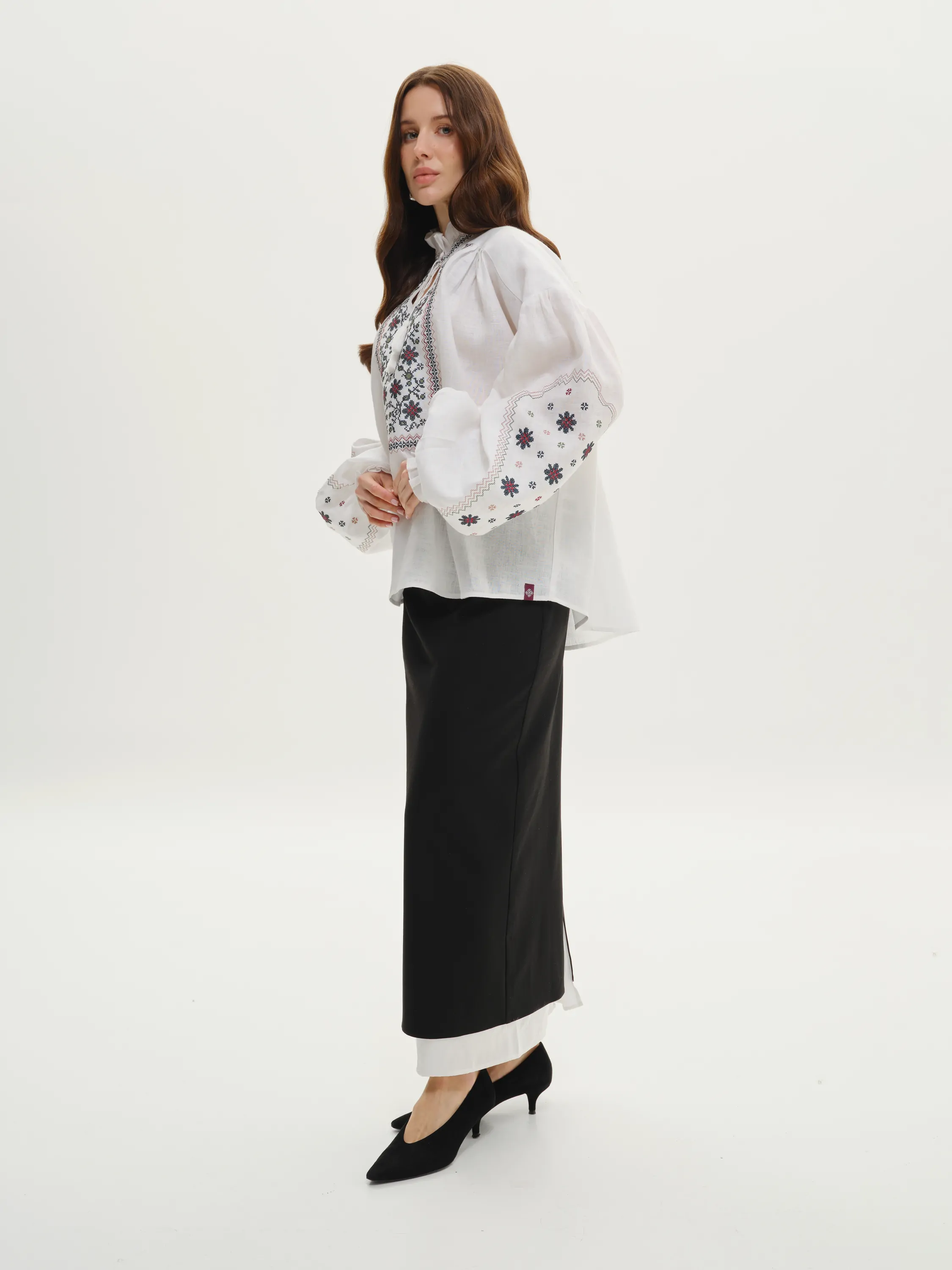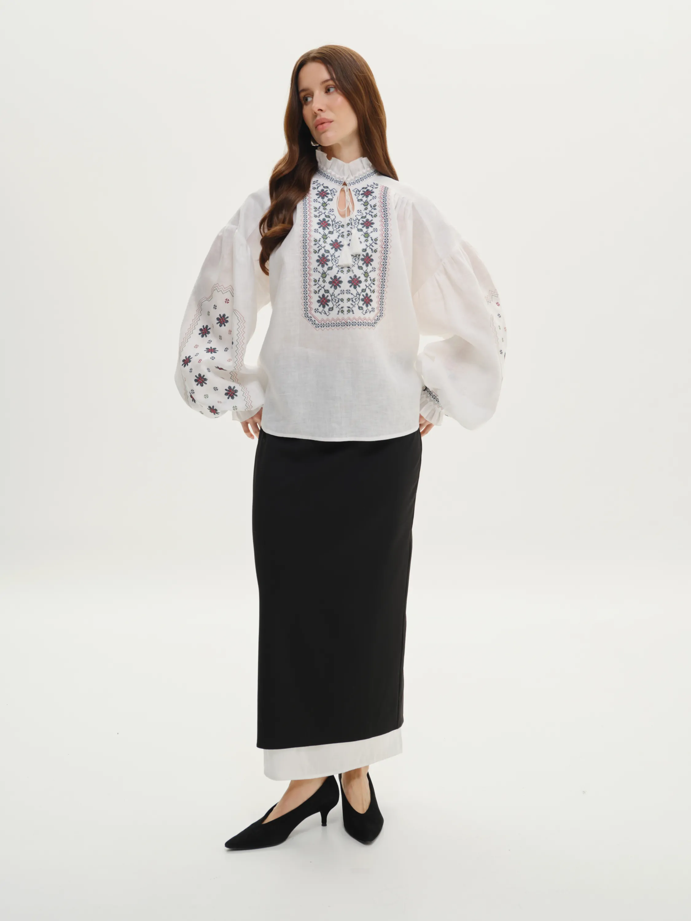 На виробі відтворено машинною вишивкою техніку вишиття «низинку».