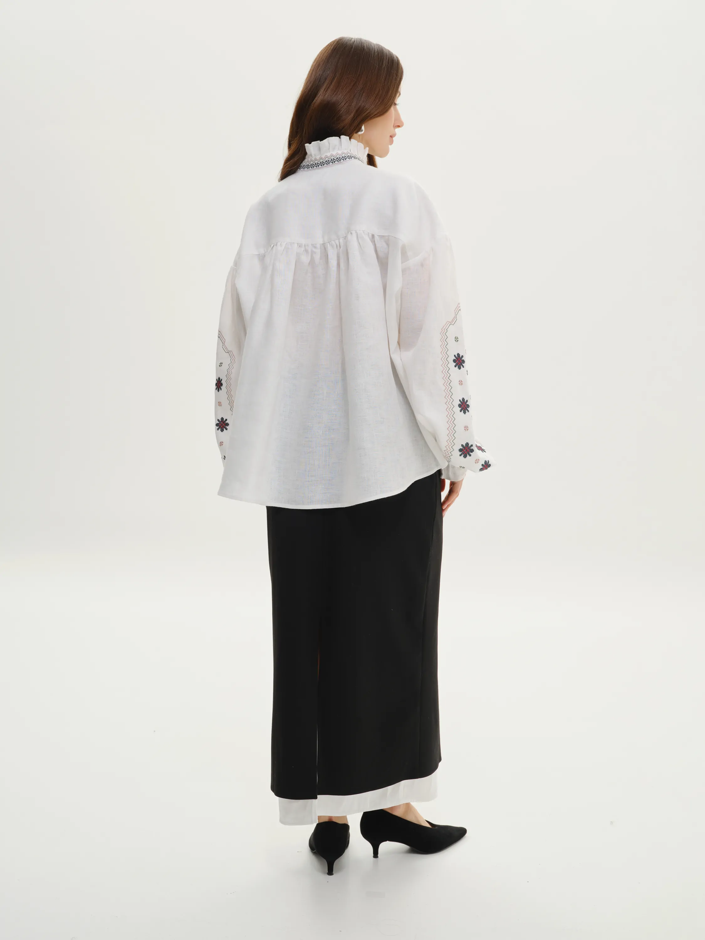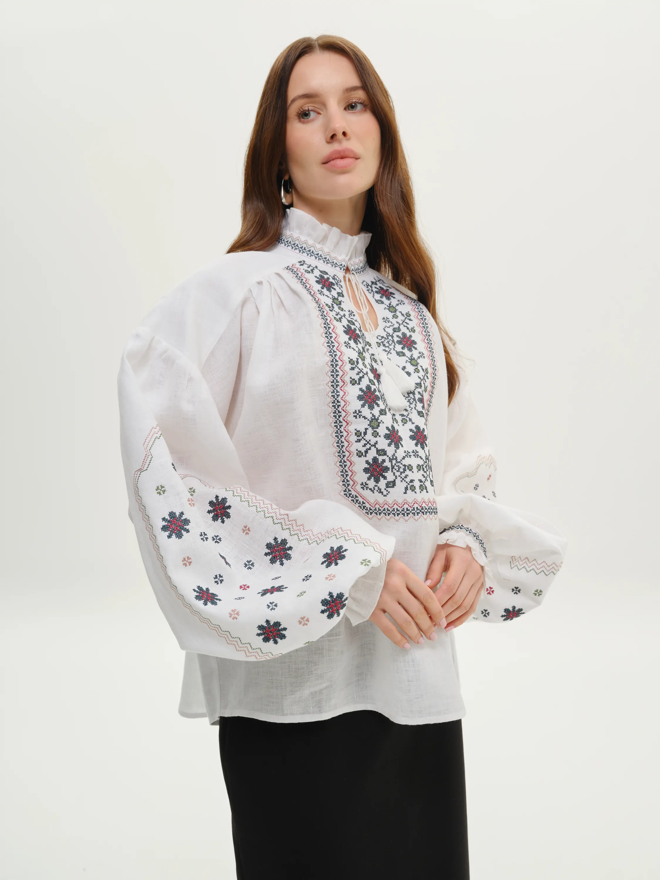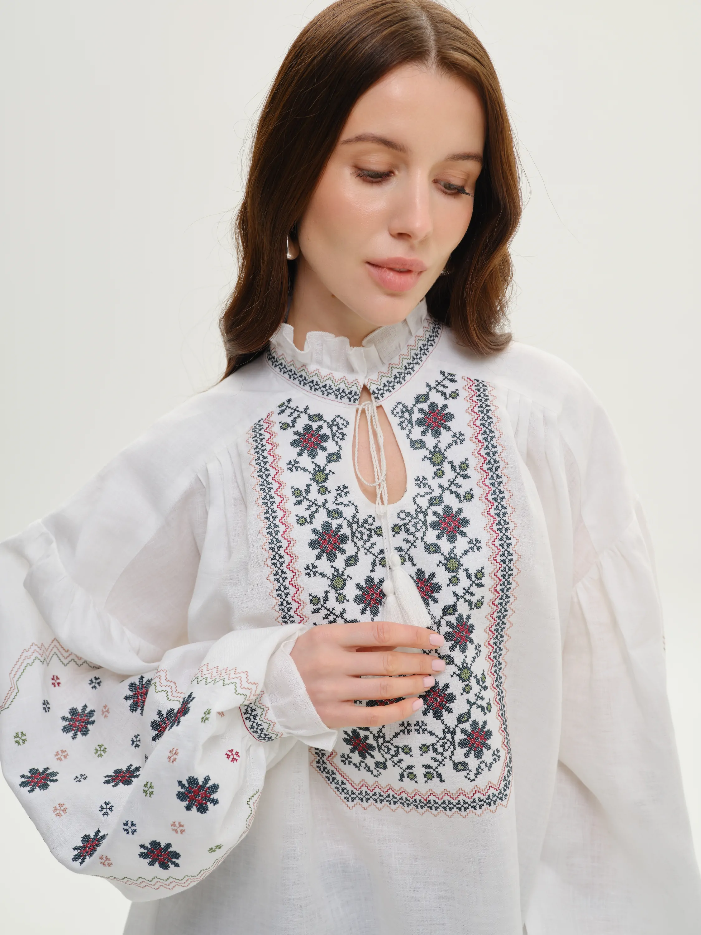 Сорочка має комір-оборку, зав’язується на китиці на горловині.